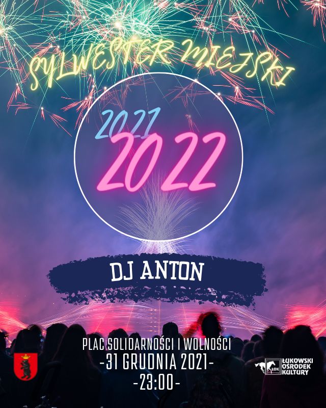 „Spędzacie Sylwestra w domu? Nie siedźcie przed telewizorem. Przed północą przyjdźcie na miejską imprezę sylwestrową” – czytamy w informacji nadesłanej z Łukowskiego Ośrodka Kultury. To propozycja aby wspólnie powitać nadchodzący, nowy 2022 rok. Miejska impreza sylwestrowa odbędzie się na placu Solidarności i Wolności. Początek wspólnej zabawy godzina 23.00. Poprowadzi ją Dj Anton.