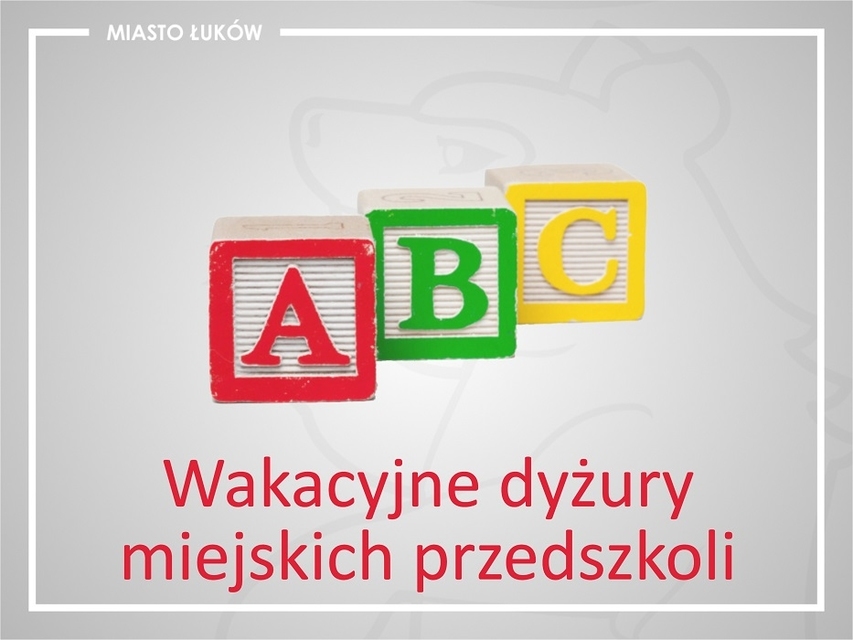 Zgodnie z podjętymi decyzjami, od 1 do 24 lipca dyżury będą pełnić przedszkola nr 2 i 3 oraz oddział przedszkolny w Szkole Podstawowej nr 5. Następnie od 27 do 21 sierpnia dyżurować będą przedszkola nr 1, 4 i 7. Nieczynne będzie zaś przez całe wakacje Przedszkole Miejskie nr 6, działające w ramach Zespołu Szkolno – Przedszkolnego.