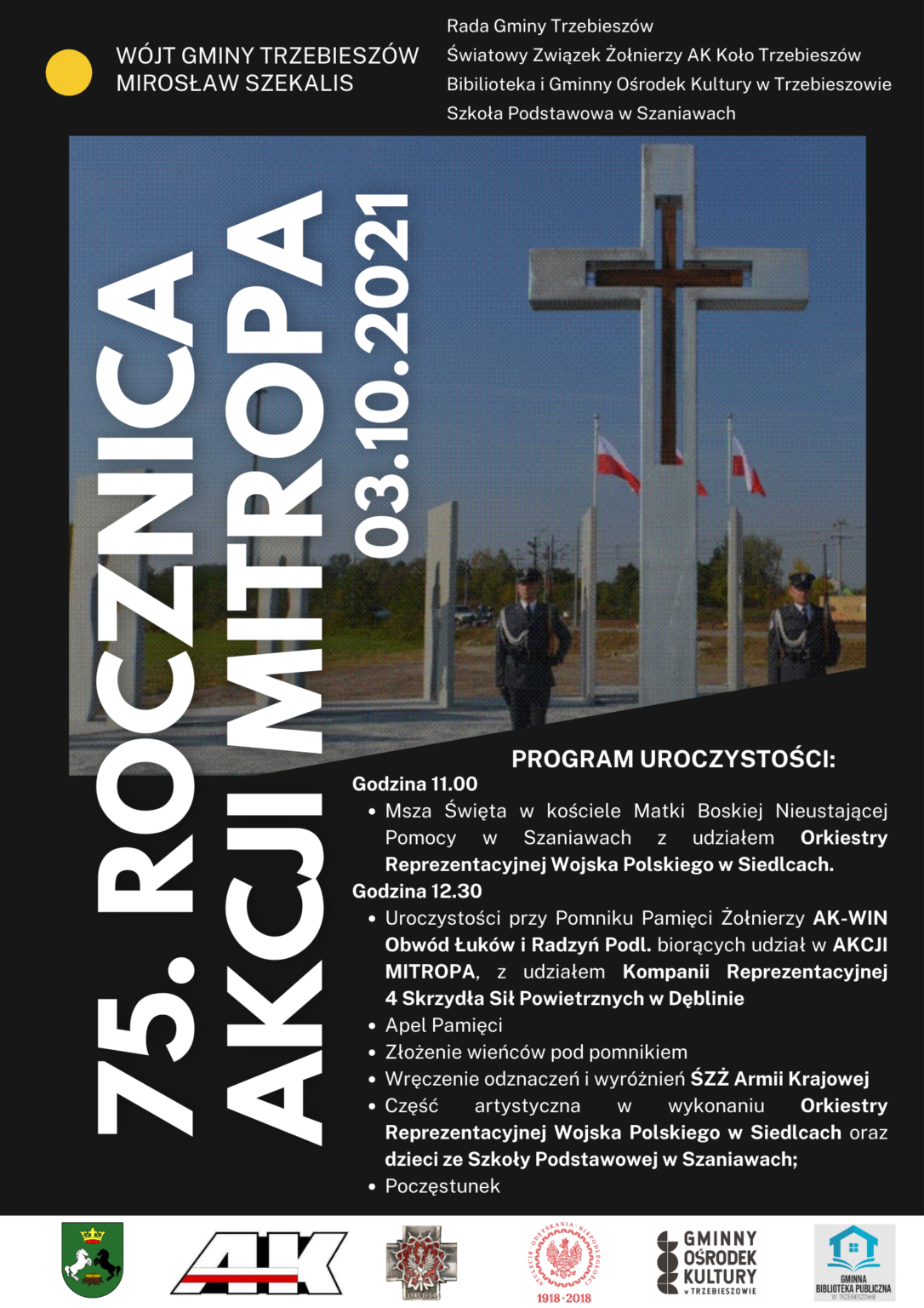 Na te uroczystości mieszkańców  Gminy Trzebieszów i okolic zaprasza Rada Gminy Trzebieszów, Wójt Gminy Trzebieszów, Światowy Związek Żołnierzy AK Koło Trzebieszów, Biblioteka i Gminny Ośrodek Kultury w Trzebieszowie