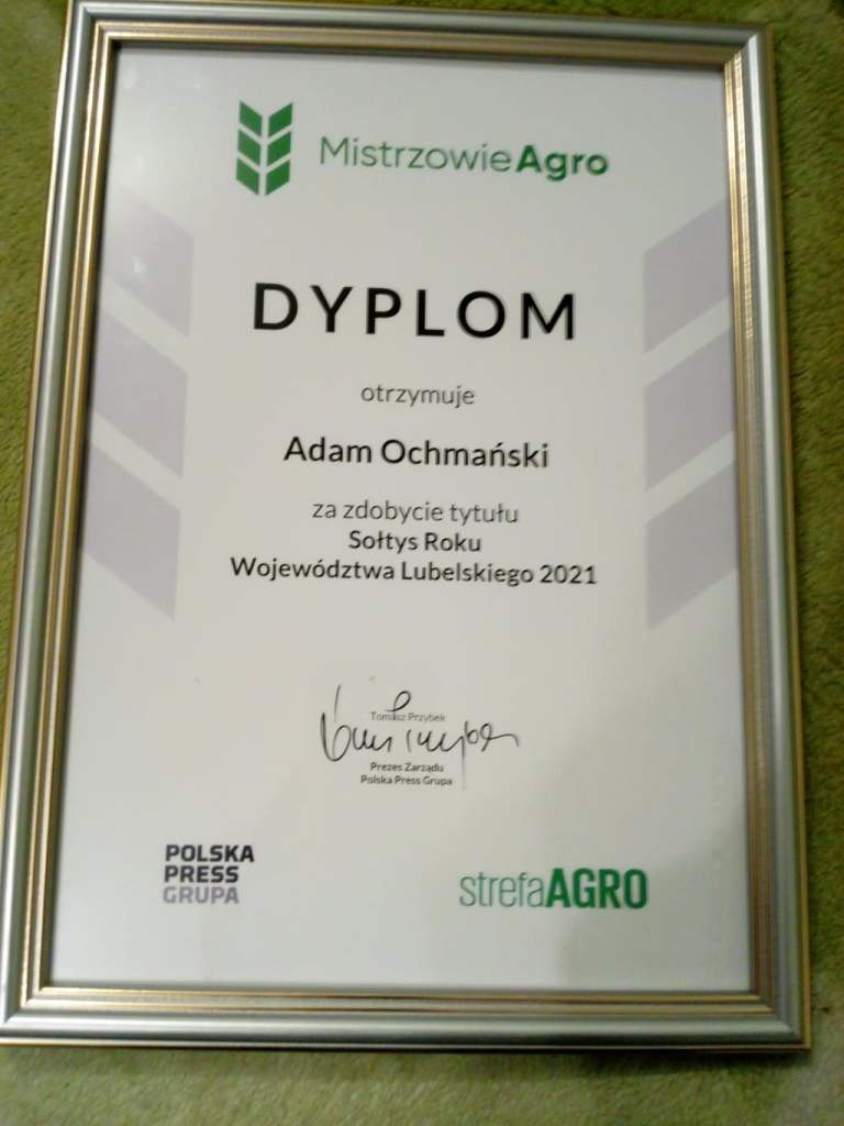 Plebiscyt Mistrzowie Agro 2021 rozpoczął się na początku października. W ramach plebiscytu przyznano tytuły: Sołtys Roku, Rolnik Roku, Gospodyni Roku, Koło Gospodyń Wiejskich Roku i Sołectwo Roku. Najpierw laureaci zostali wybrani osobno w powiatach. Później awansowali do wojewódzkiego etapu. Finałowe głosowanie zakończyło się we wtorek, 23 listopada o godz. 21.00. Adam Ochmański zdobył największą liczbę głosów i otrzymał tytuł Sołtysa Roku 2021 Województwa Lubelskiego.