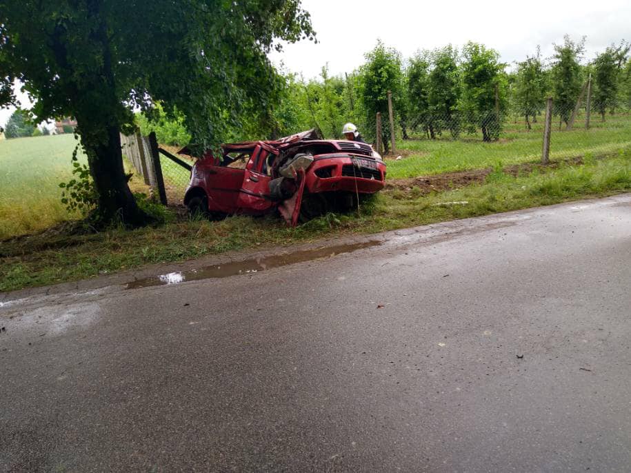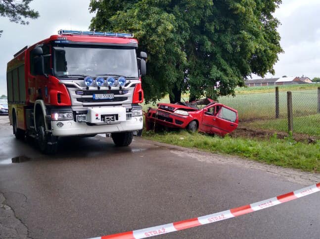 Służby o wypadku na trasie  Krzywda - Fiukówka powiadomiono około godz. 8.00. - Po dojechaniu na miejsce, a następnie przeprowadzonym rozpoznaniu stwierdzono, iż auto uderzyło w drzewo a wewnątrz niego znajdowała się osoba poszkodowana. Nasze działania polegały na zabezpieczeniu miejsca zdarzenia, ewakuacji osoby poszkodowanej z wykorzystaniem deski ortopedycznej, udzieleniu KPP, a następnie przekazaniu poszkodowanej Zespołowi Ratownictwa Medycznego - relacjonują druhowie z OSP Krzywda.