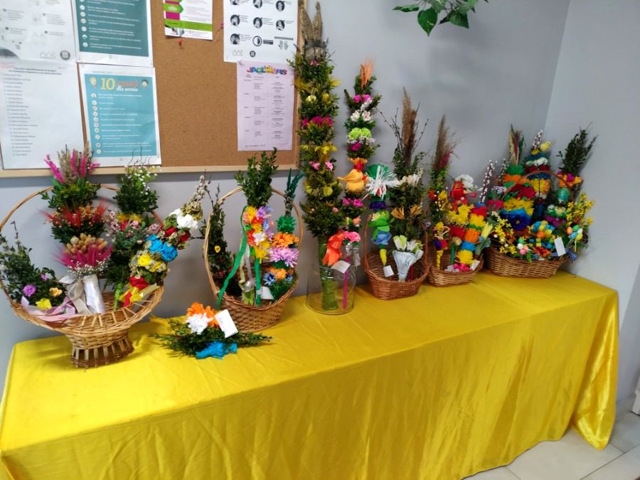 Po rozstrzygnięciu konkursu wszystkie palmy wystawione zostały na szkolnym kiermaszu wielkanocnym.