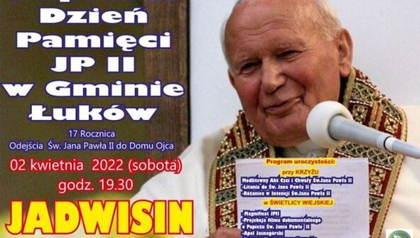 W najbliższą sobotę 2 kwietnia w Jadwisinie w gminie Łuków odbędzie się Papieski Dzień Pamięci. Mieszkańcy gminy spotkają się w 17. rocznicę odejścia Świętego Jana Pawła II do Domu Ojca.