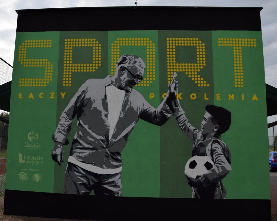 Mural został zaprojektowany i wykonany na zlecenie Gminnej Biblioteki Publicznej w Staninie. Pokazuje, że w gminie z dumą wspierany jest sport, który łączy pokolenia. Wykonał go Adam Kopeć, pseudonim Mayster Tupz. Pieniądze na jego wykonanie udało się pozyskać w Urzędzie Marszałkowskim w Lublinie. Była to kwota 2 tys. zł.