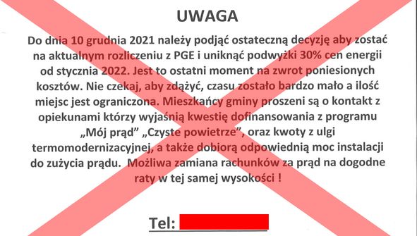 Wójt gminy Łuków Mariusz Osiak informuje, że Urząd Gminy nie jest nadawcą ulotki, która w ostatnich dniach dotarła do mieszkańców. I przestrzega przed dzwonieniem na podany na ulotce numer telefonu.