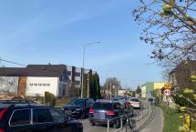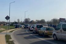 Zarządzający targowiskiem przyczyniają się do takiego stanu rzeczy. Nie wszystkie bramy są otwarte. Stąd korki przy wjeździe.
