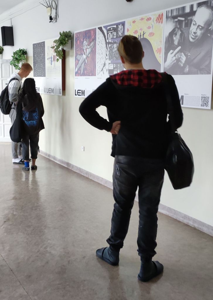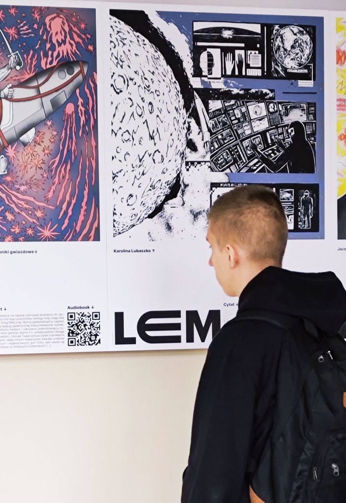 Wystawa jest multimedialna. Dzięki kodom QR wprowadza w świat lemowskich książek, wystaw, filmów. Przygotowało ją Narodowe Centrum Kultury. Wystawę, którą można oglądać na szkolnych korytarzach, uzupełnia kolekcja książek autora dostępna w bibliotece.