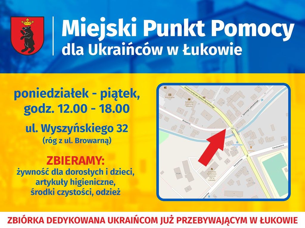 Przypominamy, że punkt zbiórki i wydawania darów dla rodzin z Ukrainy, które są już w Łukowie oraz w okolicach, prowadzą również Pomocny Łuków i Kreatywne Kobiety. Kontaktować można się z nimi przez profile społecznościowe na Facebooku oraz pod numerami telefonów: 660 267 247 oraz 517 018 301.
