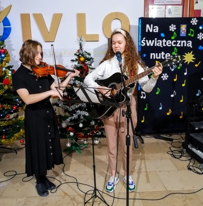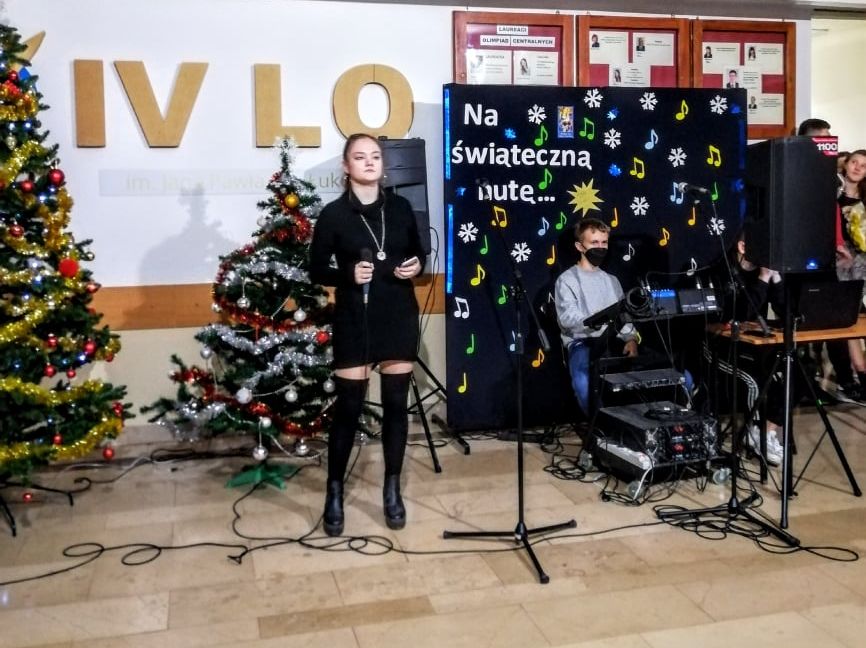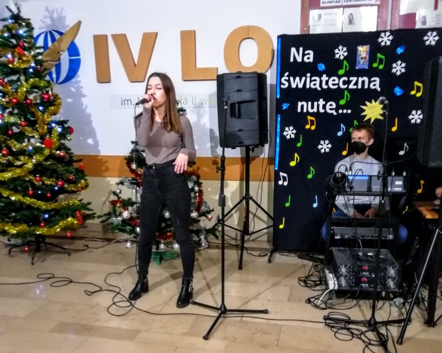 W IV Liceum Ogólnokształcącym im. Jana Pawła II, 17 grudnia podczas długiej przerwy, odbył się koncert wokalno - instrumentalny. Szkolni artyści zaprezentowali świąteczny repertuar. Wśród wykonawców znaleźli się: Gabriela Krukow, Szymon Kunczyński, Magdalena Sendek, Wiktoria Klimiuk, Maja Celińska, Dominika Piros, Julia Jastrzębska i Weronika Wojciechowska. Za organizację szkolnego koncertu odpowiedzialna była Zofia Kamola.