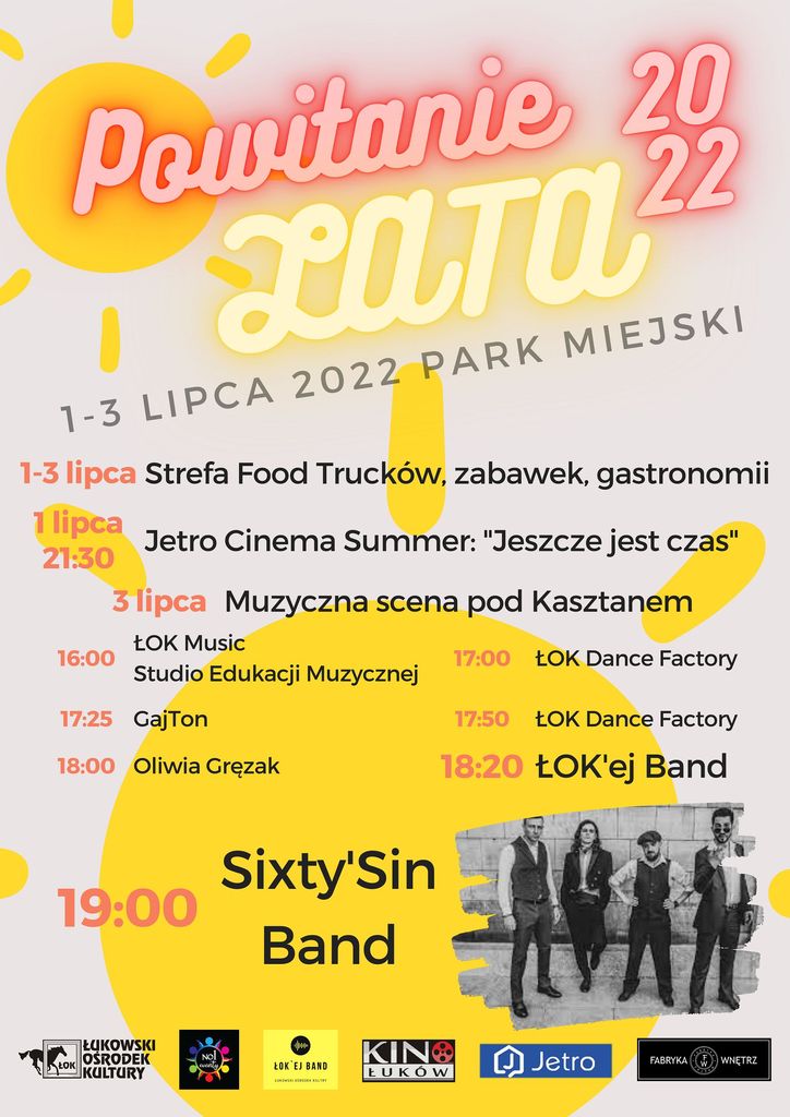 W pierwszy lipcowy weekend w Łukowie odbędzie się impreza pod hasłem „Powitanie Lata 2022 w Parku Miejskim”. Od 1 do 3 lipca w parku spotkamy Food Trucki i dmuchańce dla dzieci. Będą też atrakcje filmowe oraz występy lokalnych grup i wokalistów. W niedzielę, na scenie, która zostanie ustawiona w parku przy fontannie, wystąpią m.in. Oliwia Gręzak, ŁOK'ej Band oraz Sixty'Sin Band. WIĘCEJ