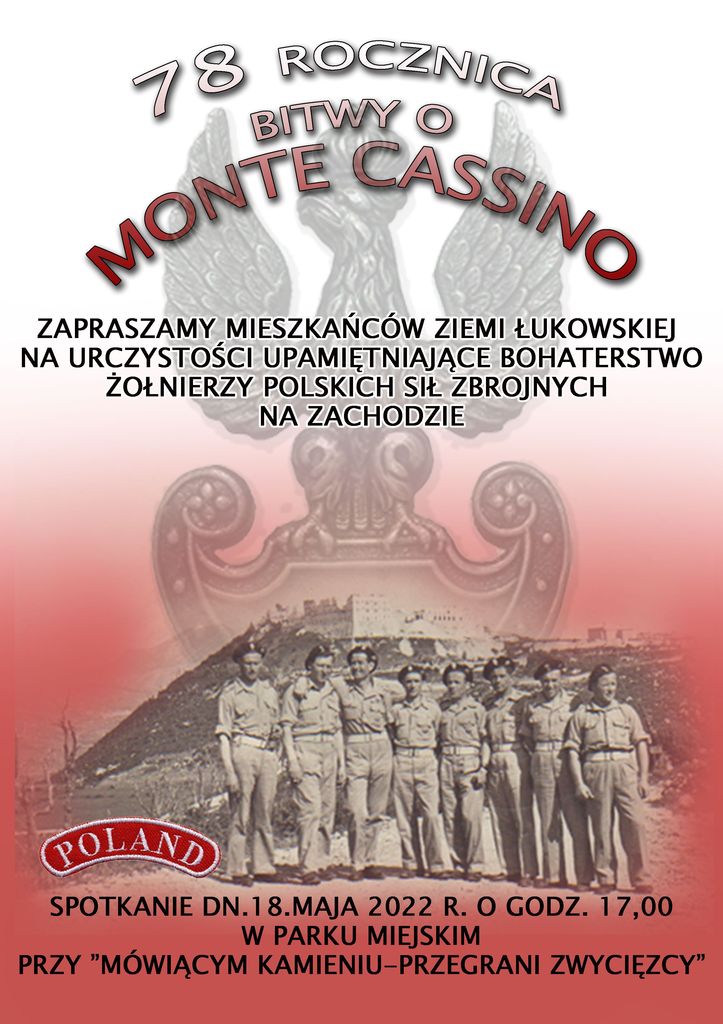 W środę, 18 maja w łukowskim parku, przy „Mówiącym Kamieniu – Przegrani Zwycięzcy” odbędzie się spotkanie. Okazją będą obchody 78. rocznicy Bitwy o Monte Cassino.
