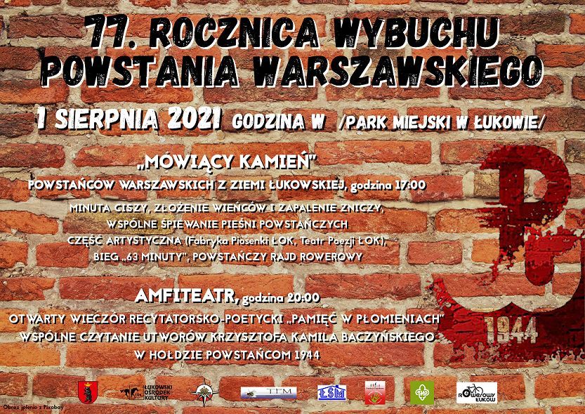 Niedziela 1 sierpnia to dzień, w którym będziemy obchodzić 77. rocznicę wybuchu Powstania Warszawskiego. Łukowskie obchody rozpoczną się o godzinie 17.00. Odbędą się w parku miejskim przy „Mówiącym Kamieniu” poświęconym powstańcom warszawskim pochodzącym z Ziemi Łukowskiej.
