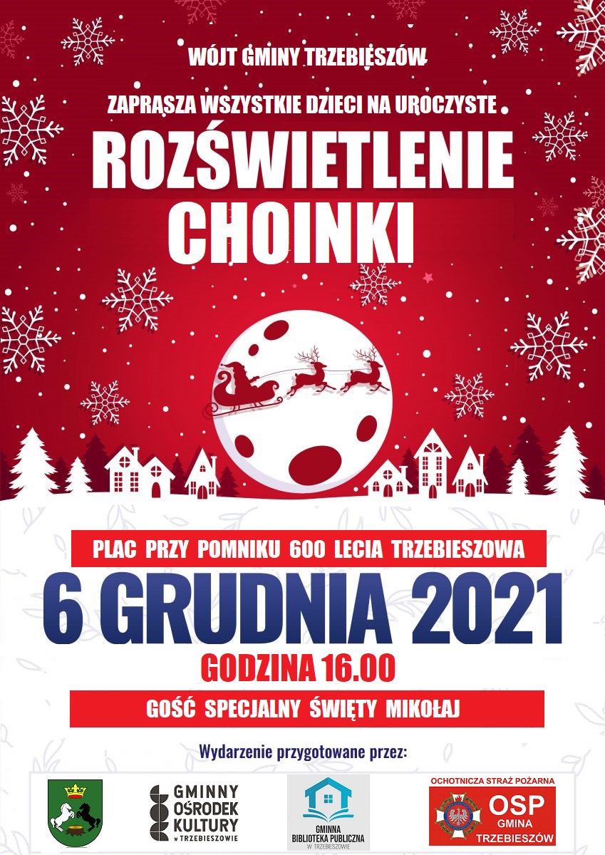 6 grudnia o 16.00 na placu przy Pomniku 600-lecia w Trzebieszowie odbędzie się uroczyste rozświetlenie choinki.