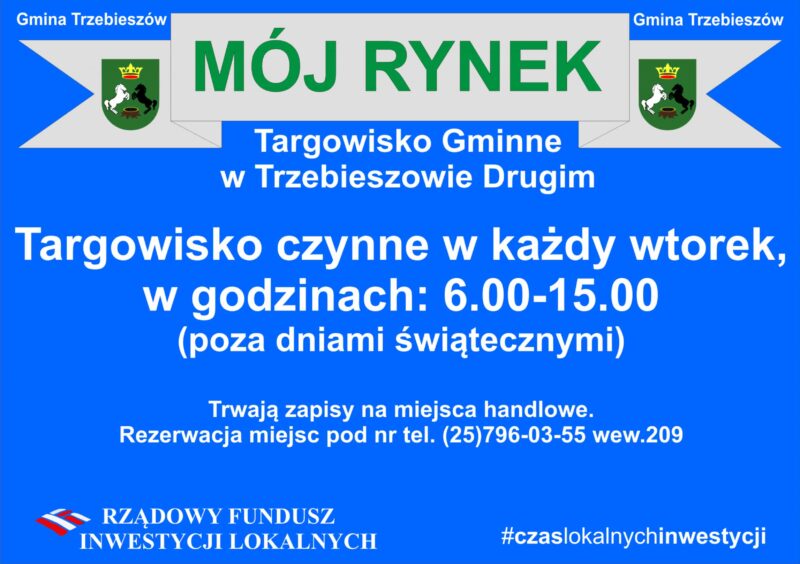 Od 7 grudnia w każdy wtorek w godz. 6.00-15.00 będzie czynne nowe targowisko Mój Rynek w Trzebieszowie.