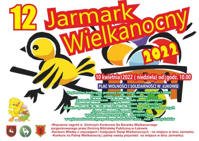 Głównym organizatorem Jarmarku jest Gminny Ośrodek Kultury. Wspierają go władze miasta i gminy Łuków. Na Jarmarku Wielkanocnym pojawią się stoiska kół gospodyń wiejskich, sołectw oraz rożnych organizacji i stowarzyszeń. Będzie można kupić świąteczne przysmaki oraz wielkanocne ozdoby. Będzie też można poczęstować się tradycyjnym barszczykiem, a dla dzieci Wielkanocny Kurczaczek i Zajączek będą mieli słodkie upominki. Przygotowana zostanie też „żywa wiosenna zagroda wiejska”. W części artystycznej zobaczymy Dziecięcy Zespół Pieśni i Tańca „Jata” Gminy Łuków.