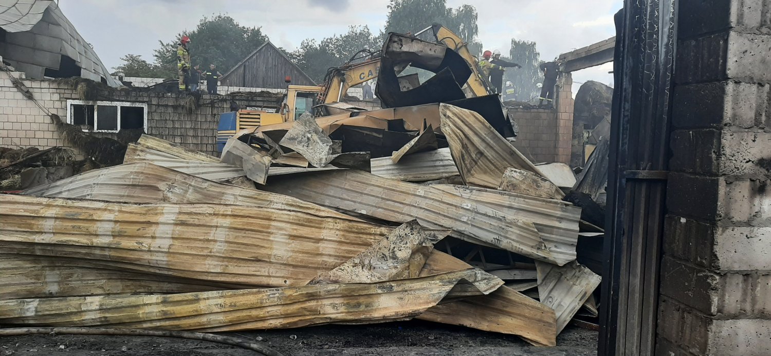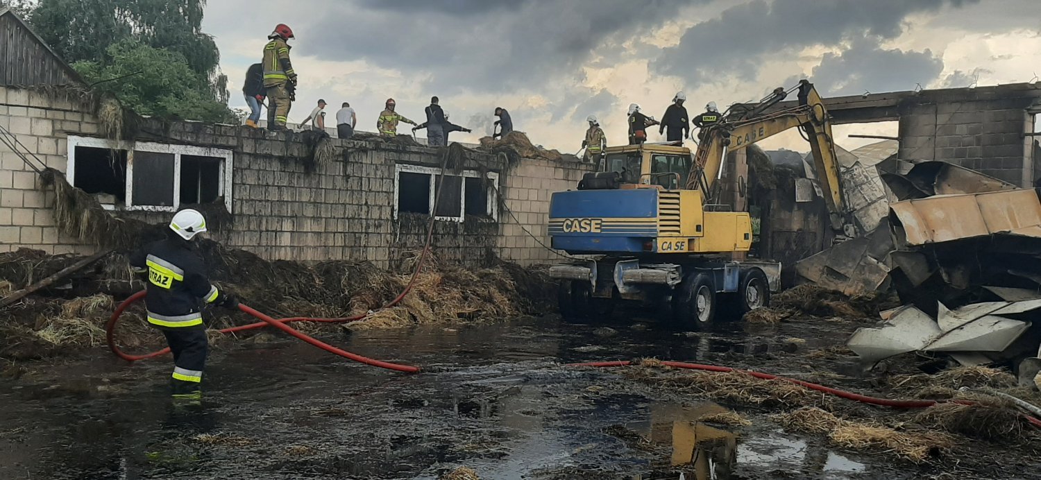 W wyniku pożaru, jaki wybuchł we wtorek około godz. 19.30 w Jeziorach, spłonęły budynki i znajdujące się w nich słoma, siano, zboże oraz maszyny rolnicze. Straty są ogromne.