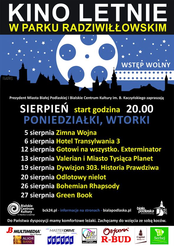 W poniedziałkowe i wtorkowe wieczory w sierpniu w bialskim Parku Radziwiłłowskim będzie można oglądać filmy pod chmurką. W mieście rusza Kino Letnie, filmy będzie można oglądać bezpłatnie. pierwsza projekcja już 5 sierpnia.