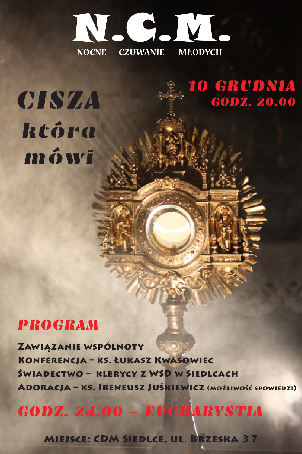 Zbliża się Nocne Czuwanie Młodych w Siedlcach. Spotkanie pod hasłem „Cisza która mówi” odbędzie się 10 grudnia w Centrum Duszpasterstwa Młodzieży w Siedlcach przy ul. Brzeskiej 37.