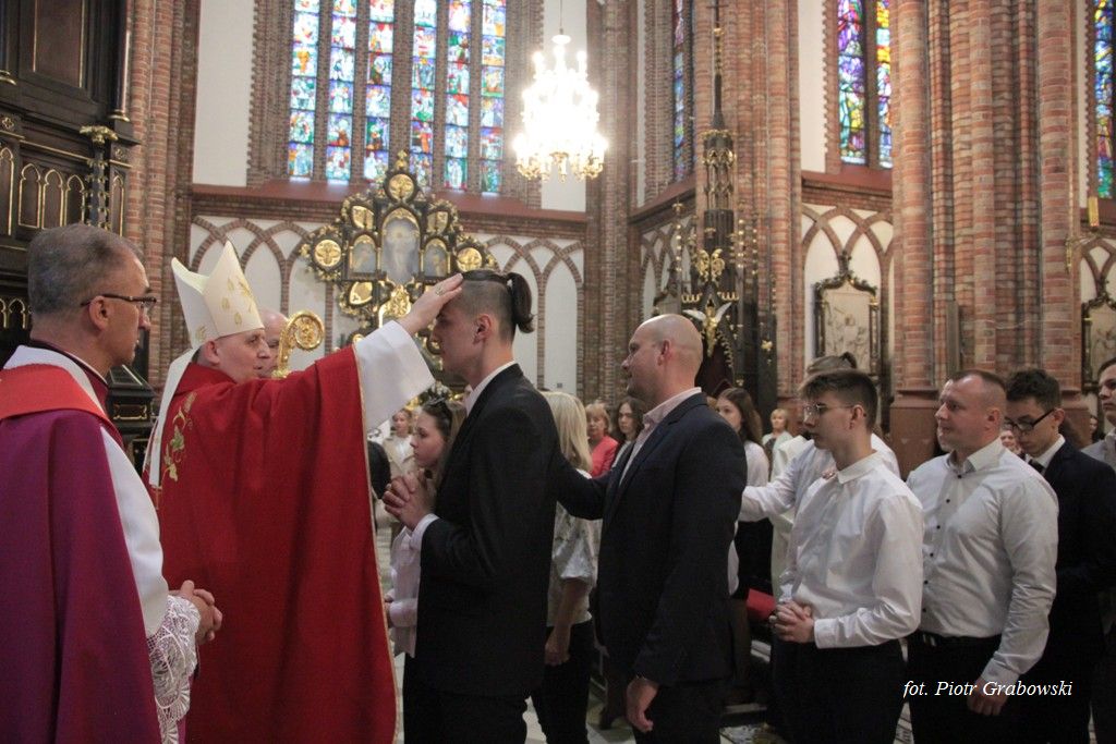 Po homilii dokonał się istotny element sakramentu, gdy ks. Biskup modlił się nad młodzieżą, prosząc o to, aby Duch Święty zstąpił na nich i umocnił ich do praktykowania swojej wiary. Następnie ks. biskup dokonał gestu nałożenia rąk oraz namaszczenia krzyżmem świętym wypowiadając słowa: "Przyjmij znamię Ducha Świętego".