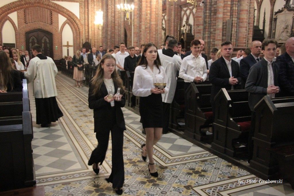 Na zakończenie Eucharystii młodzież wyraziła swoją wdzięczność ks. Biskupowi za udzielenie im sakramentu bierzmowania, ks. kan. Dariuszowi Mioduszewskiemu, proboszczowi parafii, ks. Grzegorzowi Chruścielowi oraz animatorom małych grup, za 2 letnie przygotowanie ich do przyjęcia tego sakramentu.