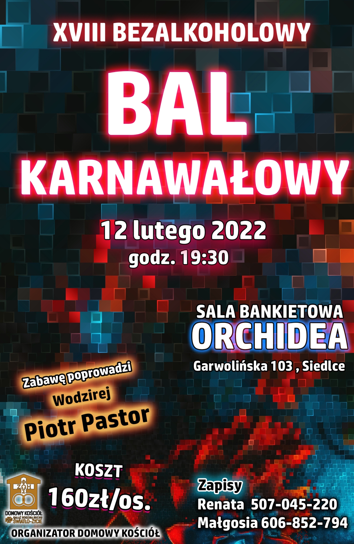 Koszt uczestnictwa w balu, który odbędzie się w sali bankietowej „Orchidea” w Siedlcach, to 160 zł od osoby. Zapisów można dokonać pod następującymi numerami: