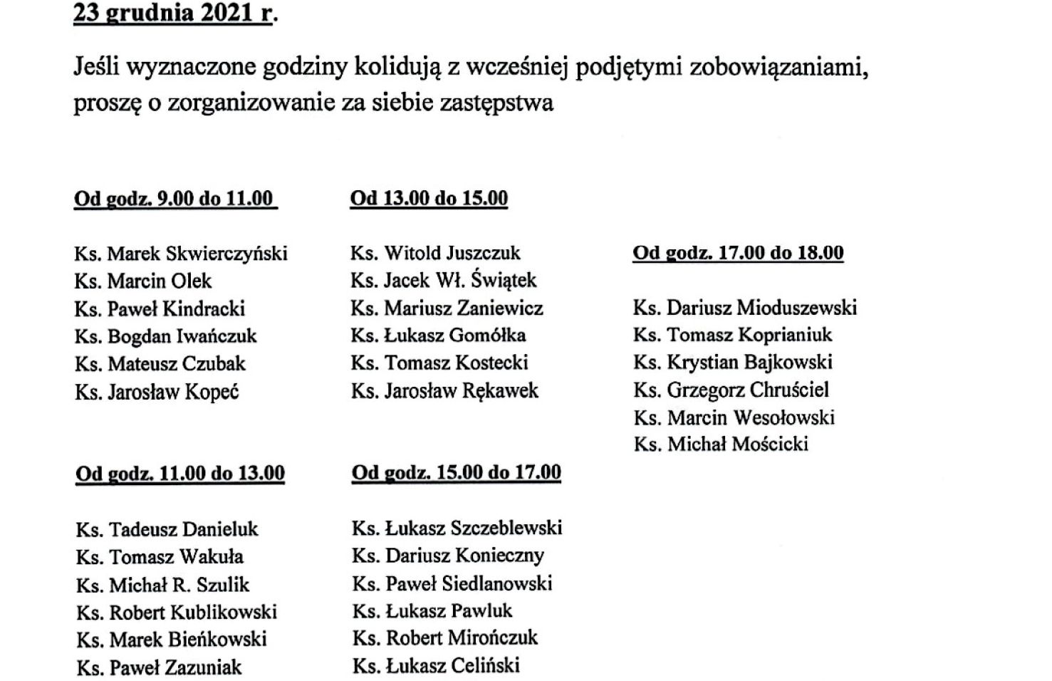 Dyżur spowiedniczy zaplanowano 23 i 24 grudnia w katedrze siedleckiej. Na ten właśnie czas będą zaproszeni spowiednicy z całej diecezji.