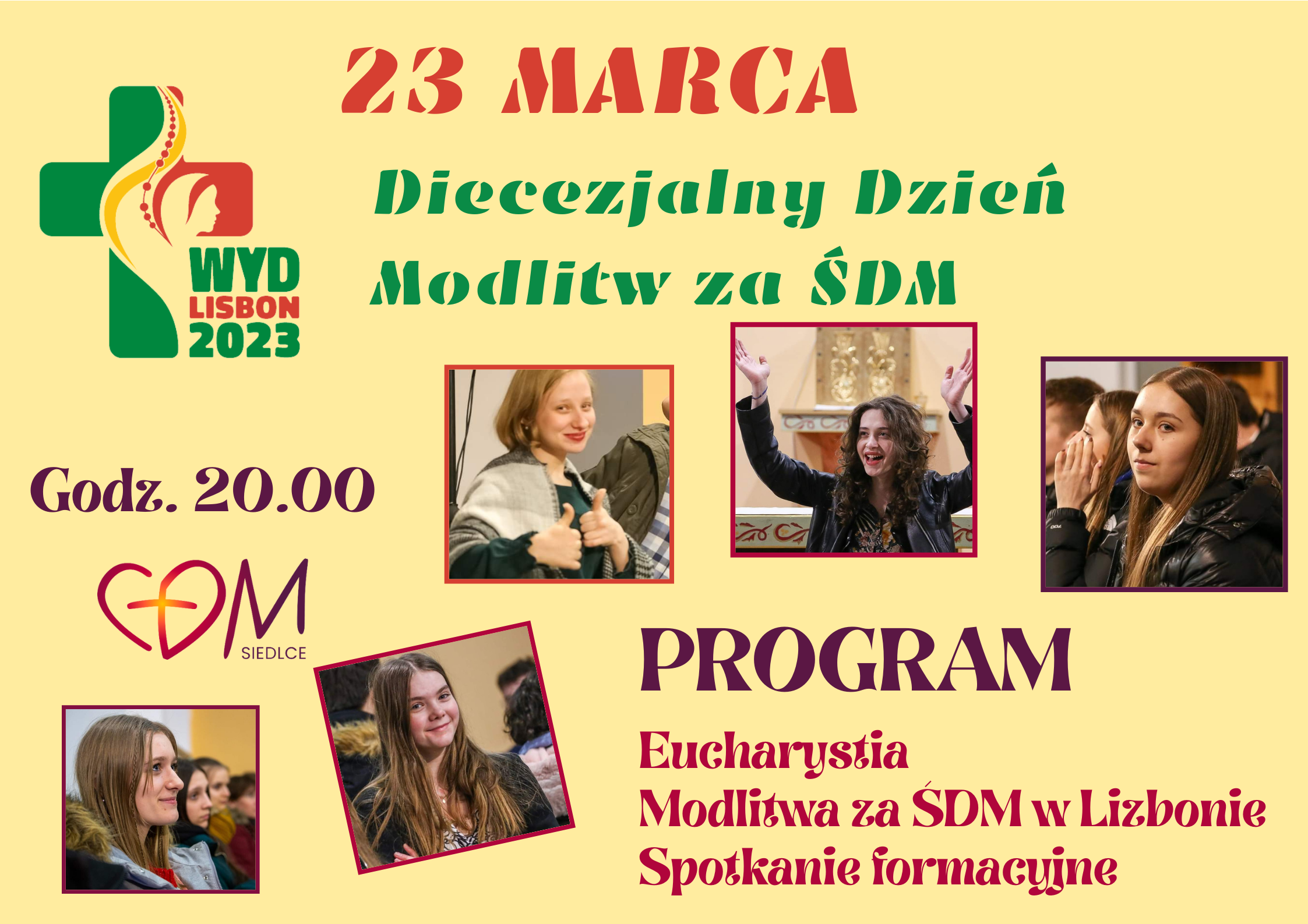 W najbliższą środę wieczorem, 23 marca o godz. 19:00 w kaplicy Centrum Duszpasterstwa Młodzieży w Siedlcach będzie celebrowana Eucharystia z okazji Dnia Modlitwy Młodych za ŚDM w Lizbonie.