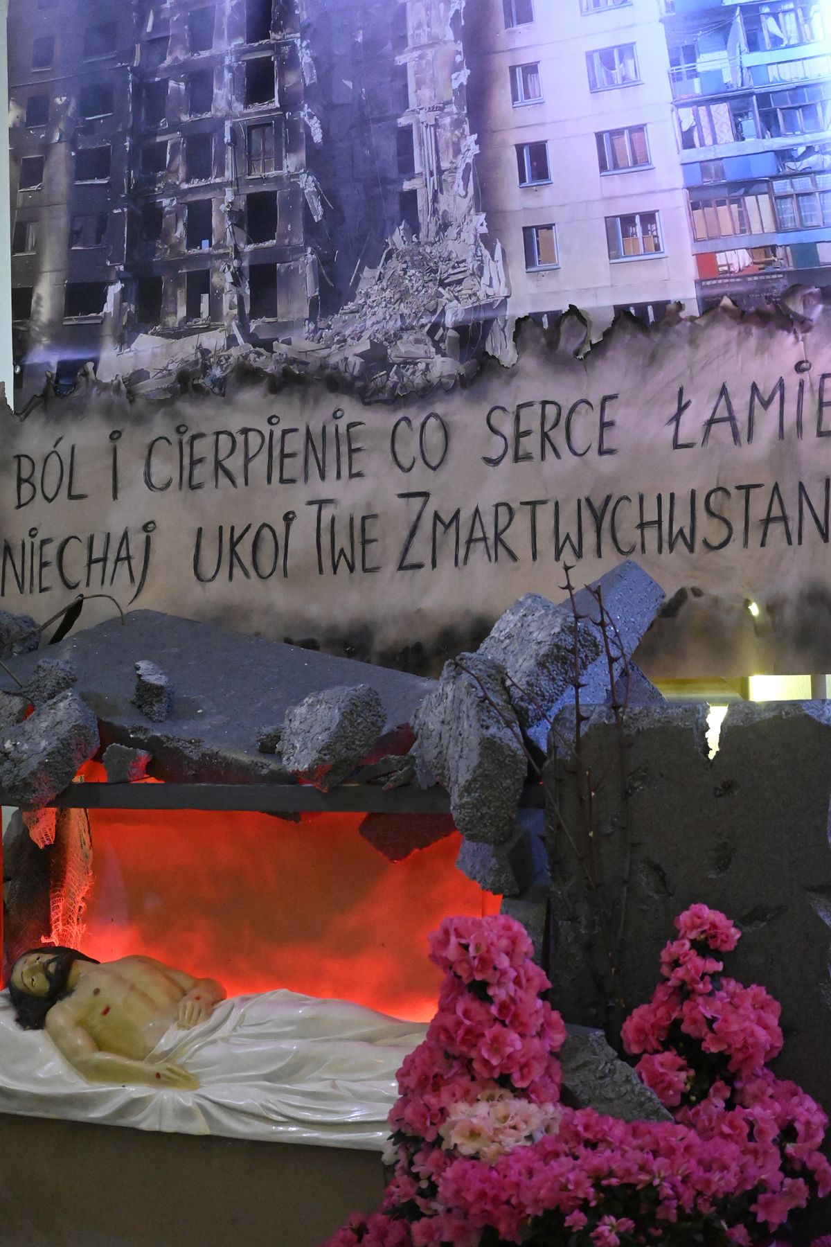 W parafiach Św. Stanisława BM i Męczenników Podlaskich wystroje nawiązują do wojny na Ukrainie.