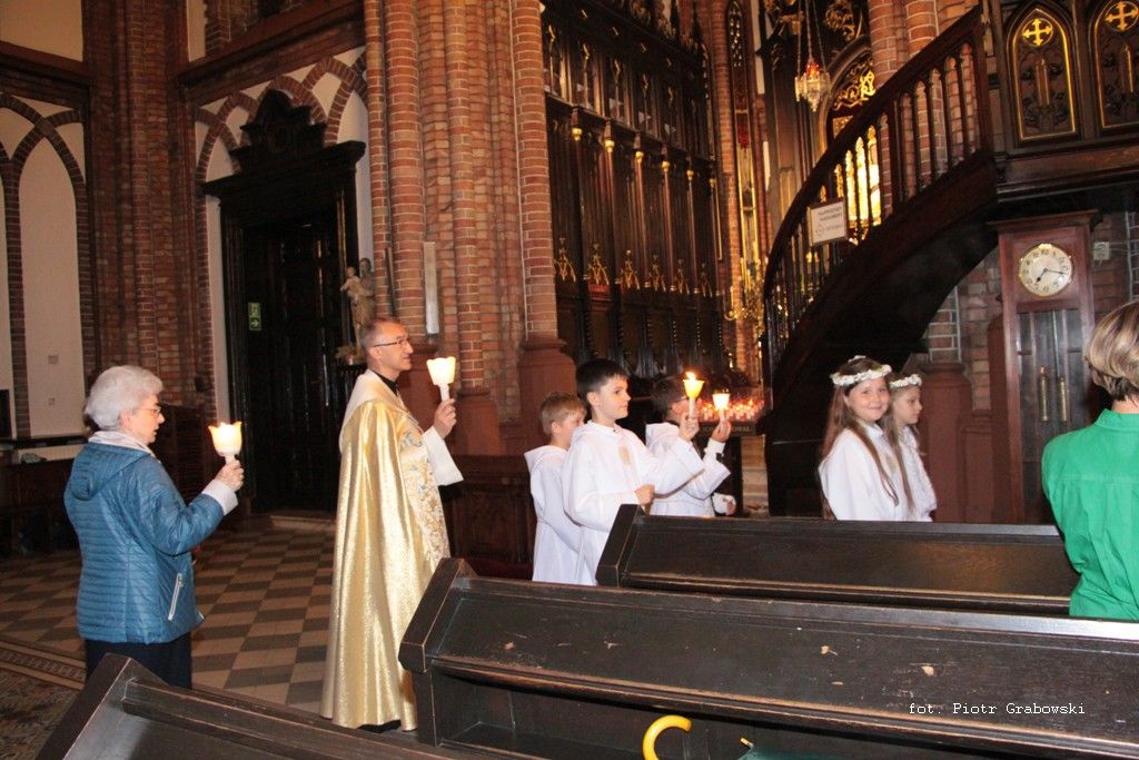 Msza Święta z licznie przybyłymi parafianami została odprawiona o godz. 18.00. Różaniec poprowadził proboszcz, ks. Dariusz Mioduszewski, natomiast rozważania poszczególnych tajemnic zostały przedstawione przez panie z kółek różańcowych. Z powodu niekorzystnej aury pogodowej, procesja została przeprowadzona w kościele. Na zakończenie dzieci komunijne otrzymały słodki upominek.