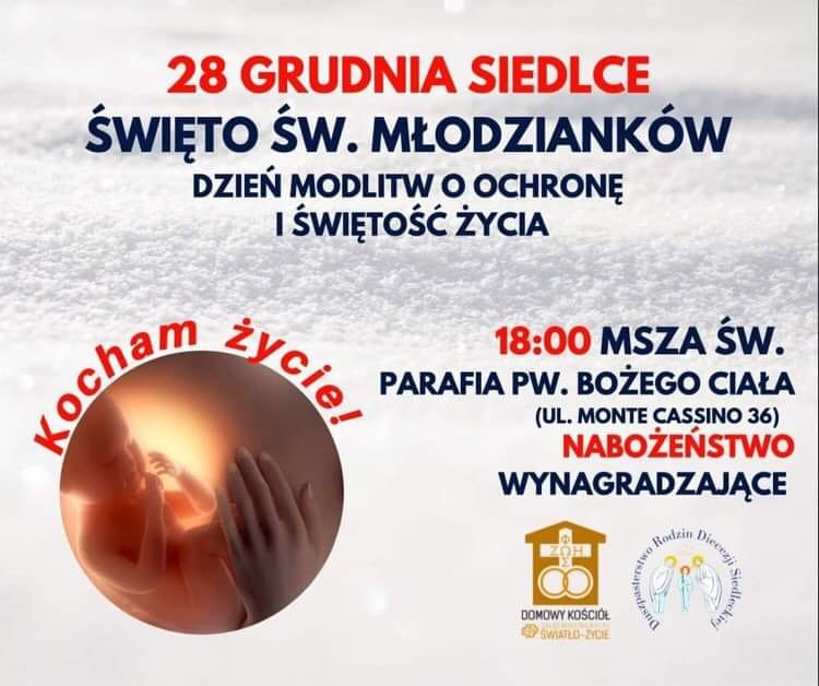 W Siedlcach o godzinie 18.00 w parafii Bożego Ciała rozpocznie się Msza św. z nabożeństwem wynagradzającym.
