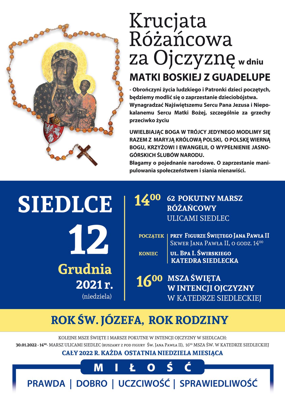 W niedzielę, 12 grudnia, we wspomnienie Matki Boskiej z Guadalupe – Obrończyni życia ludzkiego i Patronki dzieci poczętych, ulicami Siedlec przejdzie kolejny Pokutny Marsz Różańcowy.