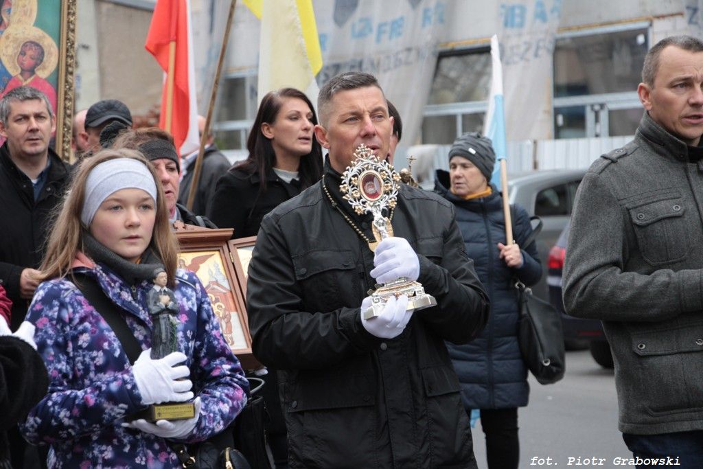 Za krzyżem wierni nieśli relikwie: Św. Andrzeja Boboli, Św. Jana Pawła II, Św. Ojca Maksymiliana Kolbe, Św. Stanisława Kostki, Św. Józefa Sancheza del Rio, Bł. Męczenników Podlaskich, Bł. Ks. Jerzego Popiełuszki, Bł. Karoliny Kózkównej, Bł. Męcz. z Paricoto o. Zbigniewa Strzałkowskiego, o. Michała Tomaszka, Bł. Carlo Acutisa.