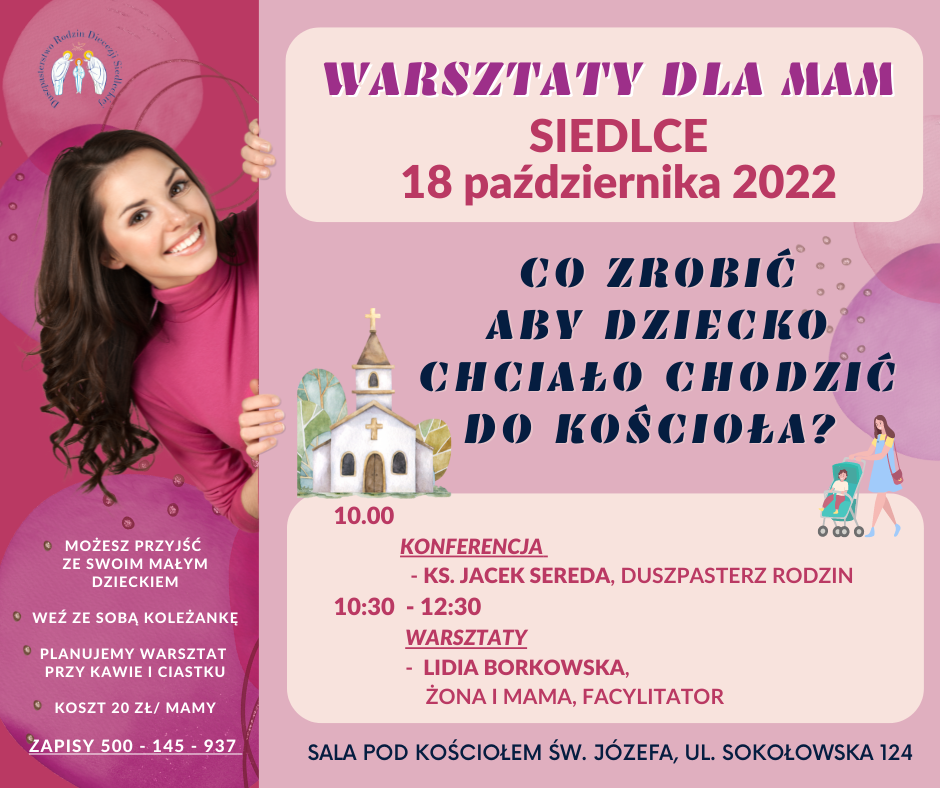 Duszpasterstwo Rodzin zaprasza na warsztaty dla mam z małymi dziećmi. Spotkanie odbędzie się we wtorek, 18 października w sali pod kościołem św. Józefa w Siedlcach.