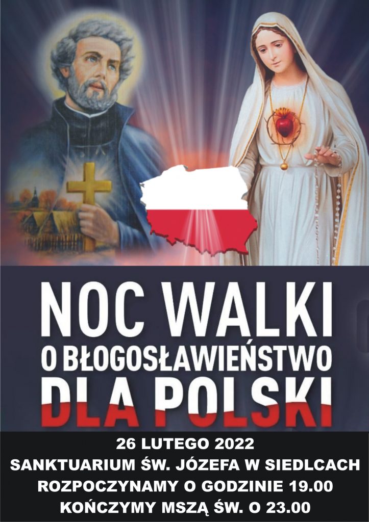W naszym regionie Noc Walki Duchowej o błogosławieństwo dla Polski odbędzie się jeszcze m. in.: w parafii Podwyższenia Krzyża Św. w Łukowie, w parafii MB Częstochowskiej w Garwolinie, w klasztorze paulinów we Włodawie, kościele Trójcy Świętej w Gończycach, w parafii w Sarnakach i w kościele św. Klary w Hajnówce.