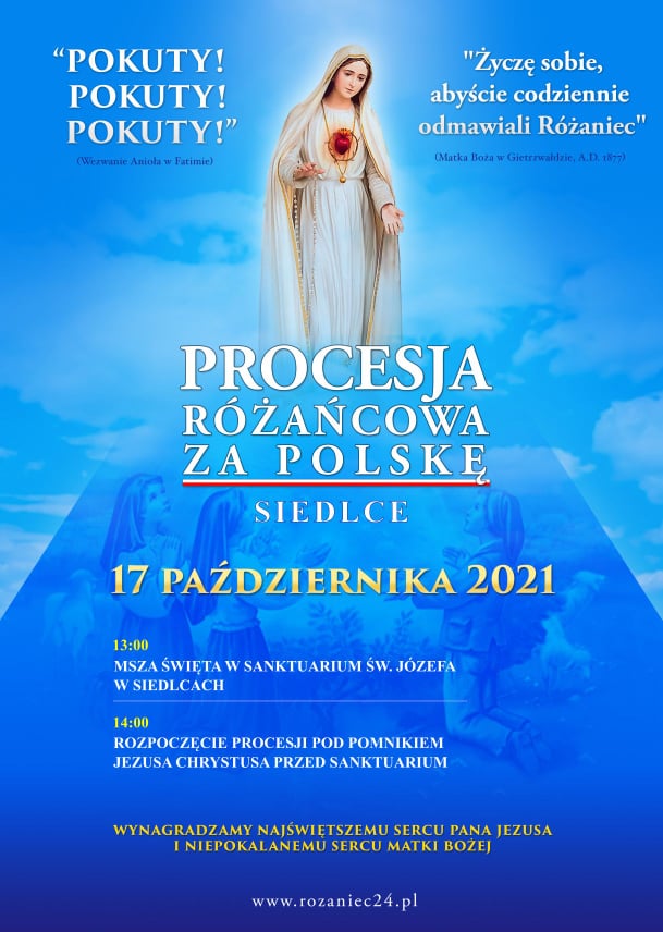17 października odbędzie się w Siedlcach modlitewne wydarzenie pn. Procesja Różańcowa za Polskę. Jego celem jest wynagrodzenie Najświętszemu Sercu Jezusa i Niepokalanemu Sercu Matki Bożej za grzechy Polaków.