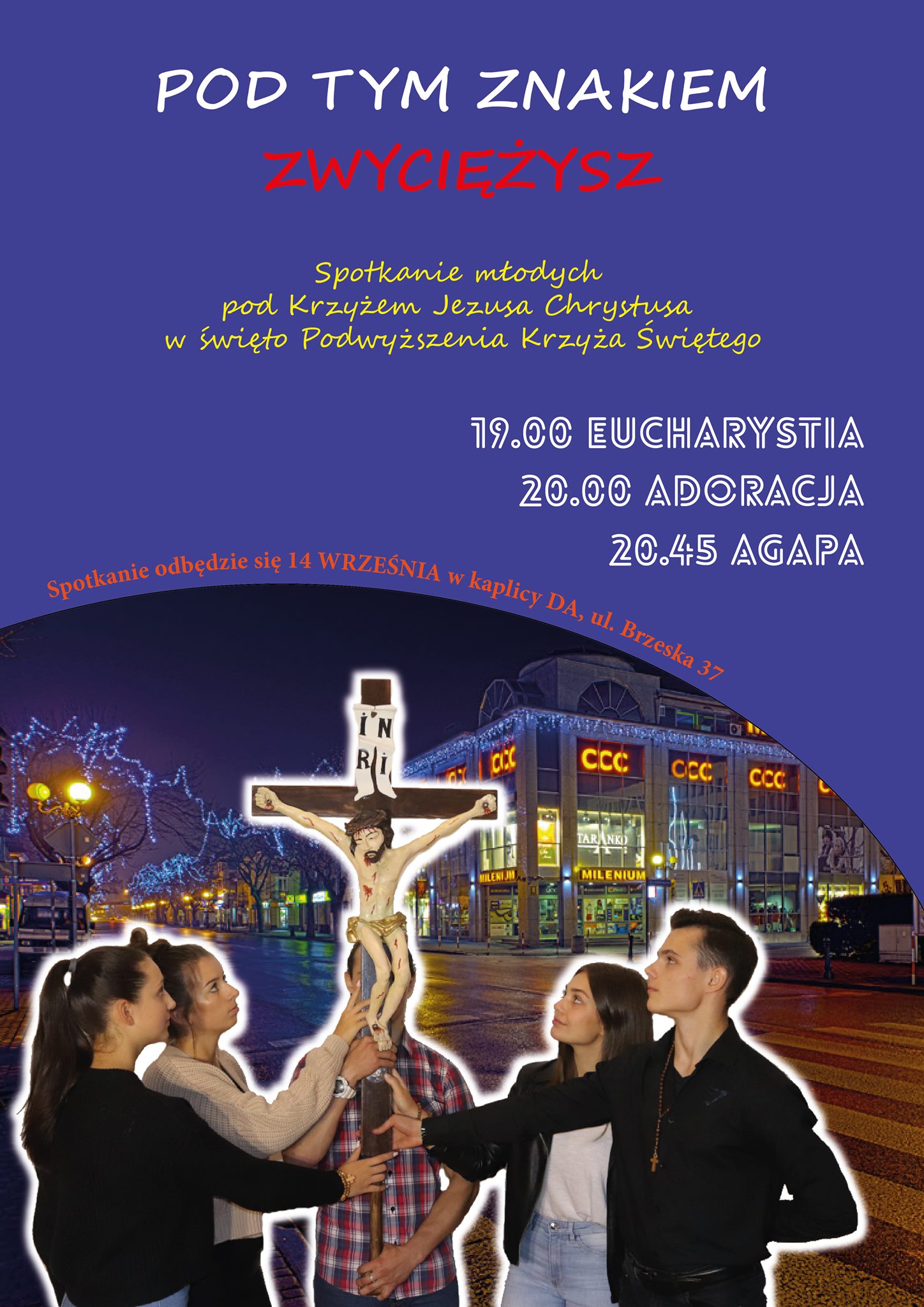 Ksiądz Radosław Piotrowski napisał: ”Znajdź chwilę, pozwól sobie na tę odrobinę luksusu, zapomnienia o szkole, problemach, wyzwaniach i obowiązkach. Choć na chwilę, stań ramię w ramię z nami na Eucharystii, adoracji Krzyża i wspólnej agapie. Zapraszamy 14 września, startujemy o 19:00 w Kaplicy przy kościele Ducha Świętego”.