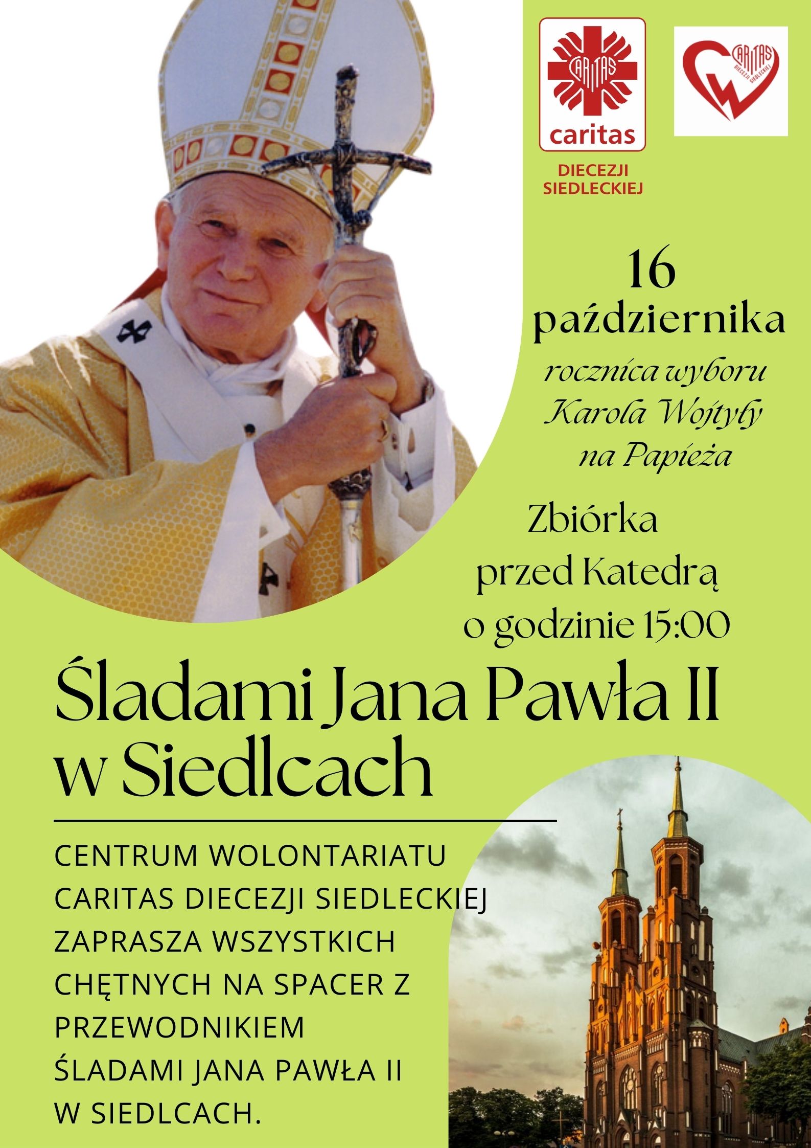 W niedzielę, 16 października przypada kolejna rocznica wyboru Karola Wojtyły na Papieża. Tego dnia Centrum Wolontariatu Caritas Diecezji Siedleckiej organizuje dla wszystkich chętnych darmowy spacer z przewodnikiem śladami Jana Pawła II w Siedlcach.