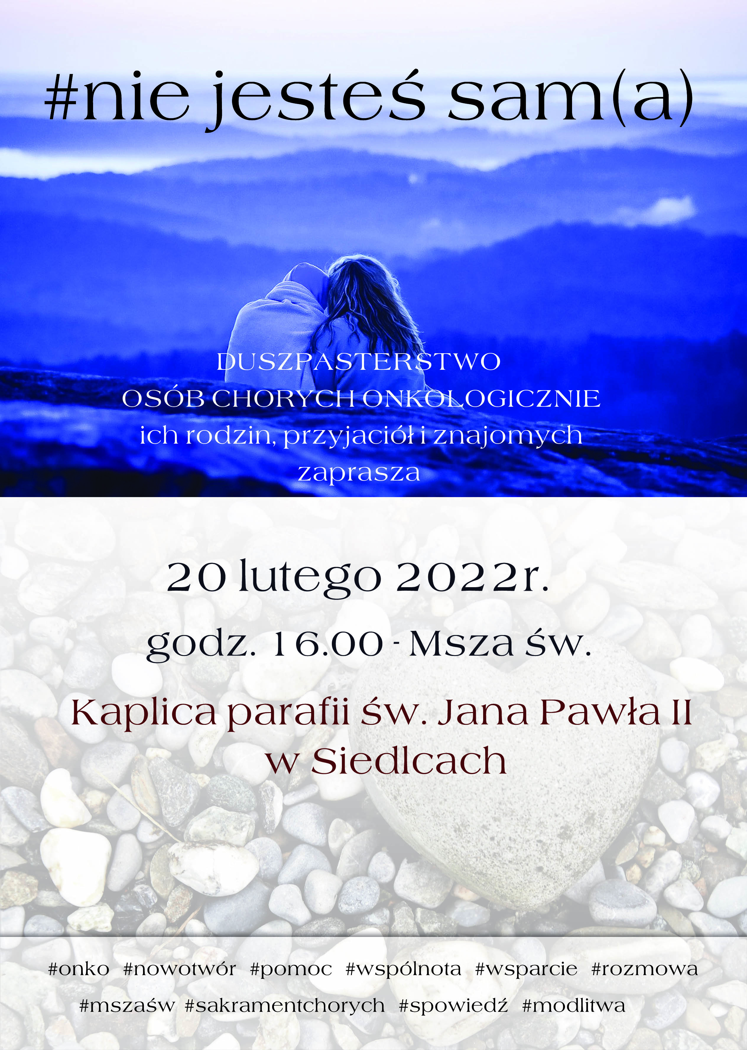 Siedleckie duszpasterstwo osób chorych onkologicznie, ich rodzin, przyjaciół i znajomych, zaprasza na spotkanie, które odbędzie się w najbliższą niedzielę, 20 lutego w kaplicy parafii św. Jana Pawła II w Siedlcach.