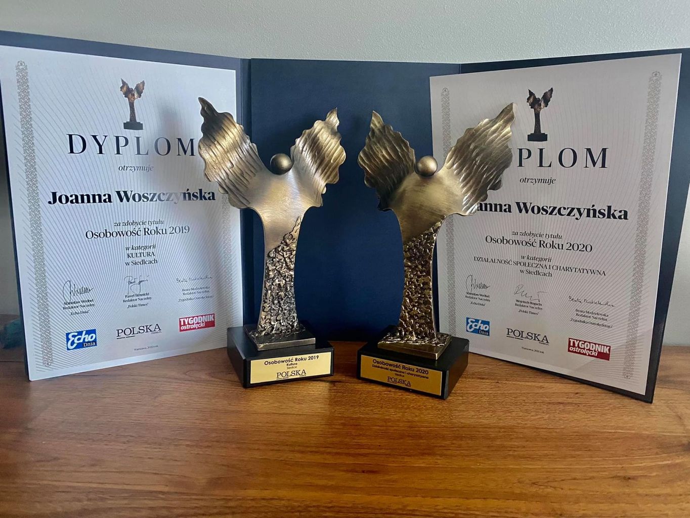 W gronie wyróżnionych znalazła się także Joanna Woszyczyńska, która  uhonorowana została dwiema statuetkami „Osobowość Roku w Siedlcach” za rok 2019 i 2020 w ogólnopolskim plebiscycie organizowanym przez redakcję „Polska Times”. Podczas uroczystej gali odbywającej się w Teatrze Capitol w Warszawie, kierownik i choreograf Formacji Tańca Nowoczesnego LUZ i Alternatywnego Teatru Tańca LUZ, otrzymała wyróżnienie w dwóch kategoriach: „Kultura” i „Działalność Społeczna i Charytatywna” za akcję „Serce na dłoni” - napisano na stronie www.mok.siedlce.pl