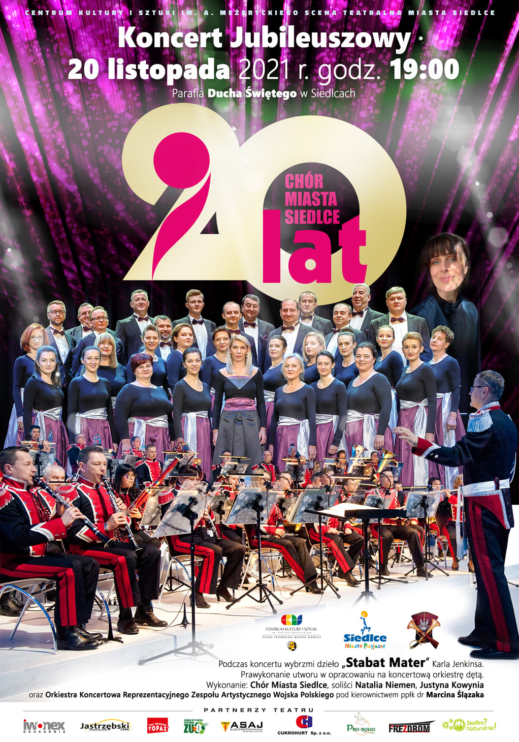 W sobotę, 20 listopada o godz. 19:00 w Kościele Ducha Świętego w Siedlcach odbędzie się koncert z okazji Jubileuszu 20-lecia działalności Chóru Miasta Siedlce. Podczas koncertu wybrzmi dzieło „Stabat Mater” Karla Jenkinsa - prawykonanie utworu w opracowaniu na koncertową orkiestrę dętą.