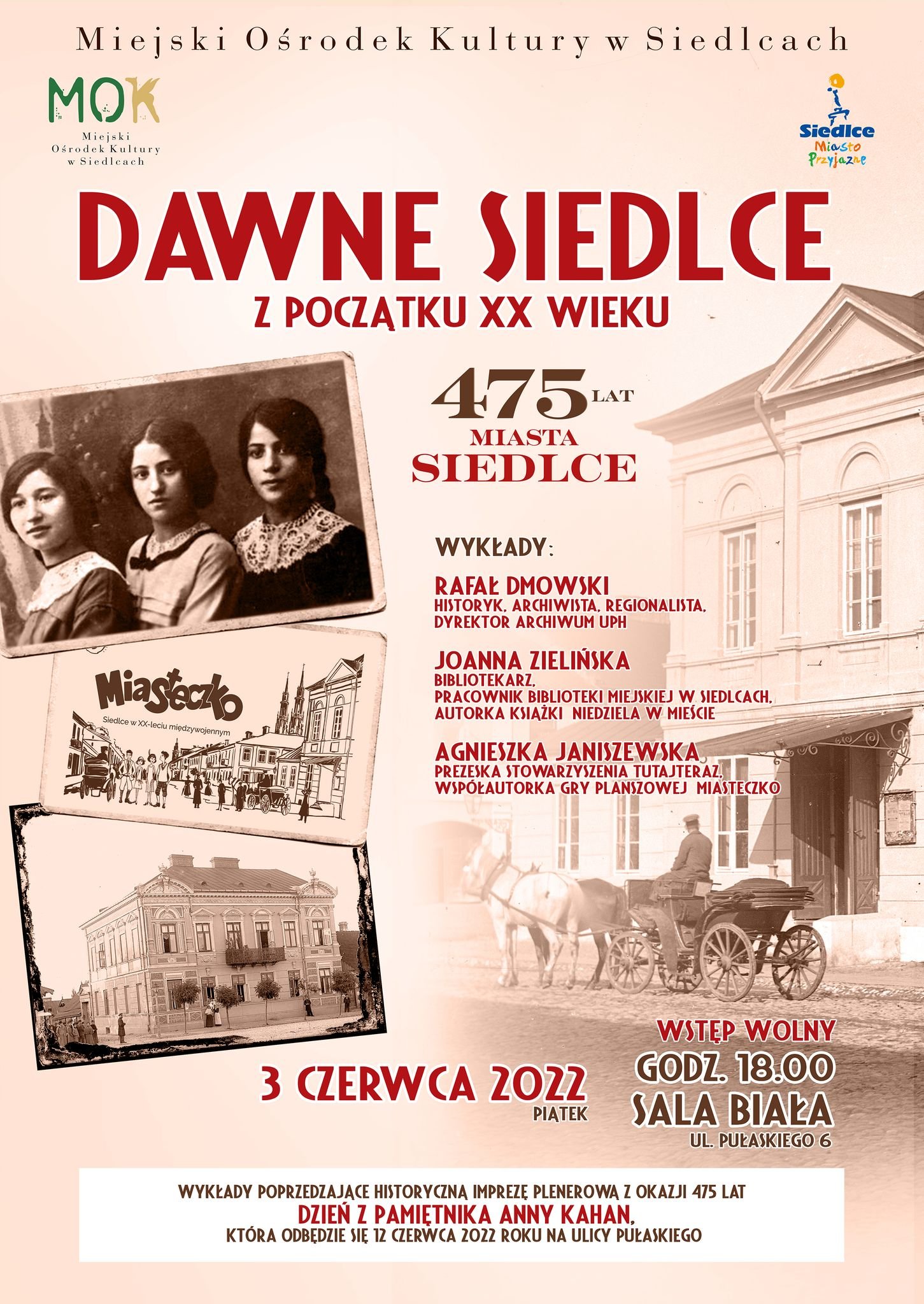 "Dawne Siedlce z początku XX wieku" - pod tym wspólnym tytułem kryją się trzy wykłady ukazujące historię miasta z trzech różnych perspektyw. Będzie ich można wysłuchać już w najbliższy piątek, 3 czerwca, od godziny 18.00 w Sali Białej Miejskiego Ośrodka Kultury w Siedlcach.