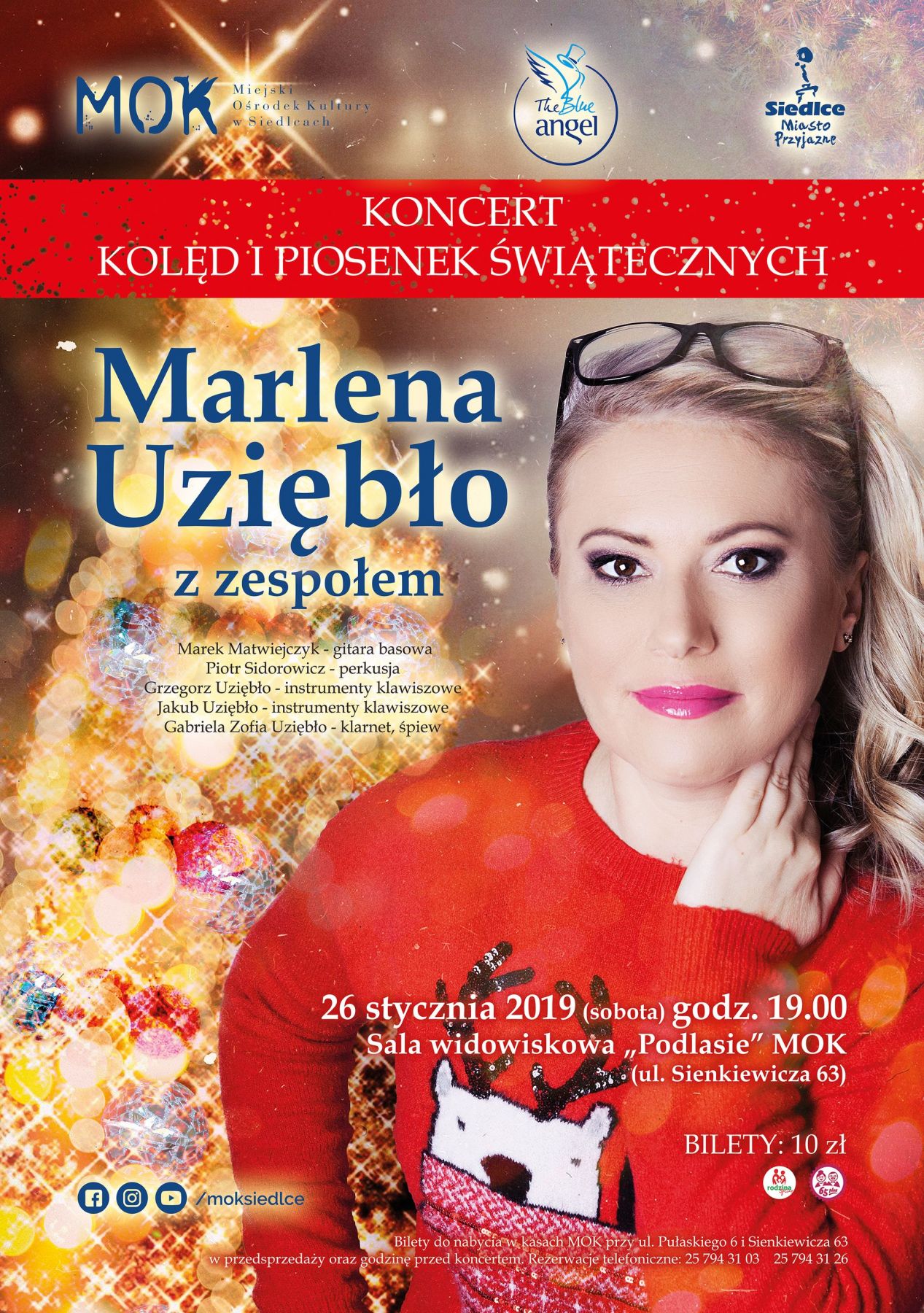Miejski Ośrodek Kultury w Siedlcach zaprasza w sobotę, 26 stycznia na koncert kolęd i piosenek świątecznych. Na scenie wystąpi Marlena Uziębło z zespołem.Tradycyjnych polskich kolęd oraz znanych i lubianych piosenek świątecznych będzie można posłuchać w sali widowiskowej "Podlasie".
