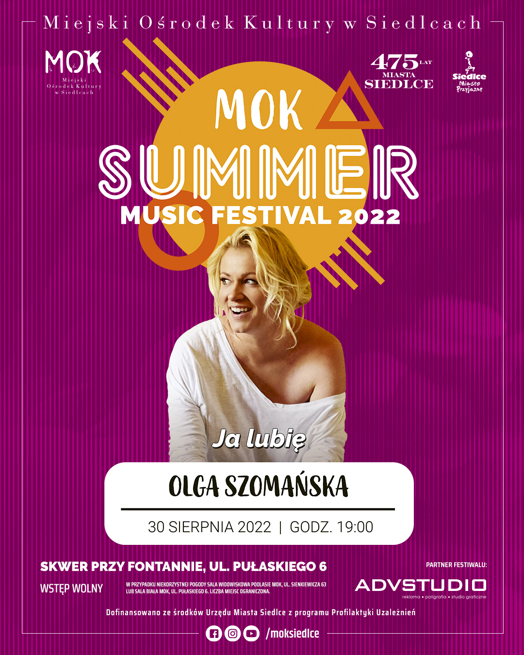 Festiwal dofinansowano ze środków Urzędu Miasta Siedlce z programu Profilaktyki Uzależnień.