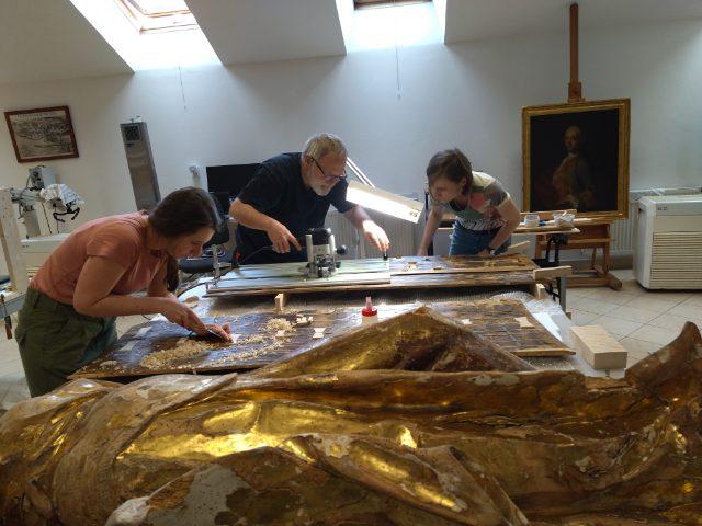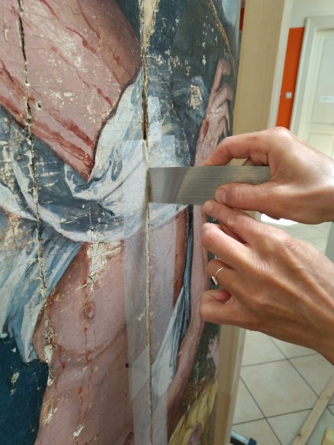 W końcowym, drugim etapie prac konserwatorskich jest kontynuowana konserwacja techniczna desek podobrazia i konserwacja estetyczna na licu obrazu.