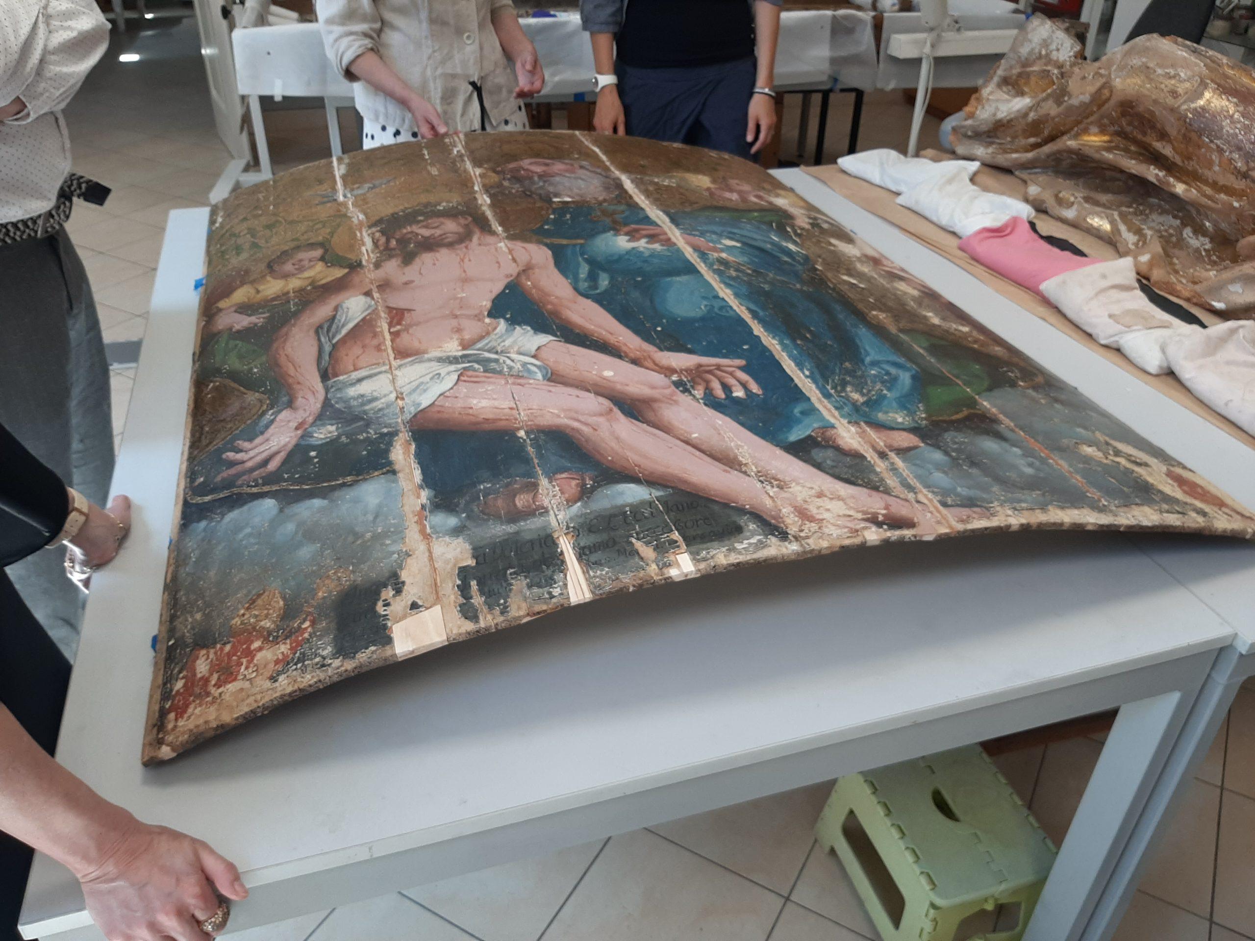 Wymagający pilnej profesjonalnej konserwacji obraz jest przeznaczony na stałą ekspozycję. Bardzo zły i stale pogarszający się stan zachowania warstw malarskich oraz postępująca destrukcja podobrazia spowodowały wycofanie go z ekspozycji. Obraz był poddany I etapowi w 2020 r. Wówczas zostały wykonane prace zabezpieczające i stabilizujące.