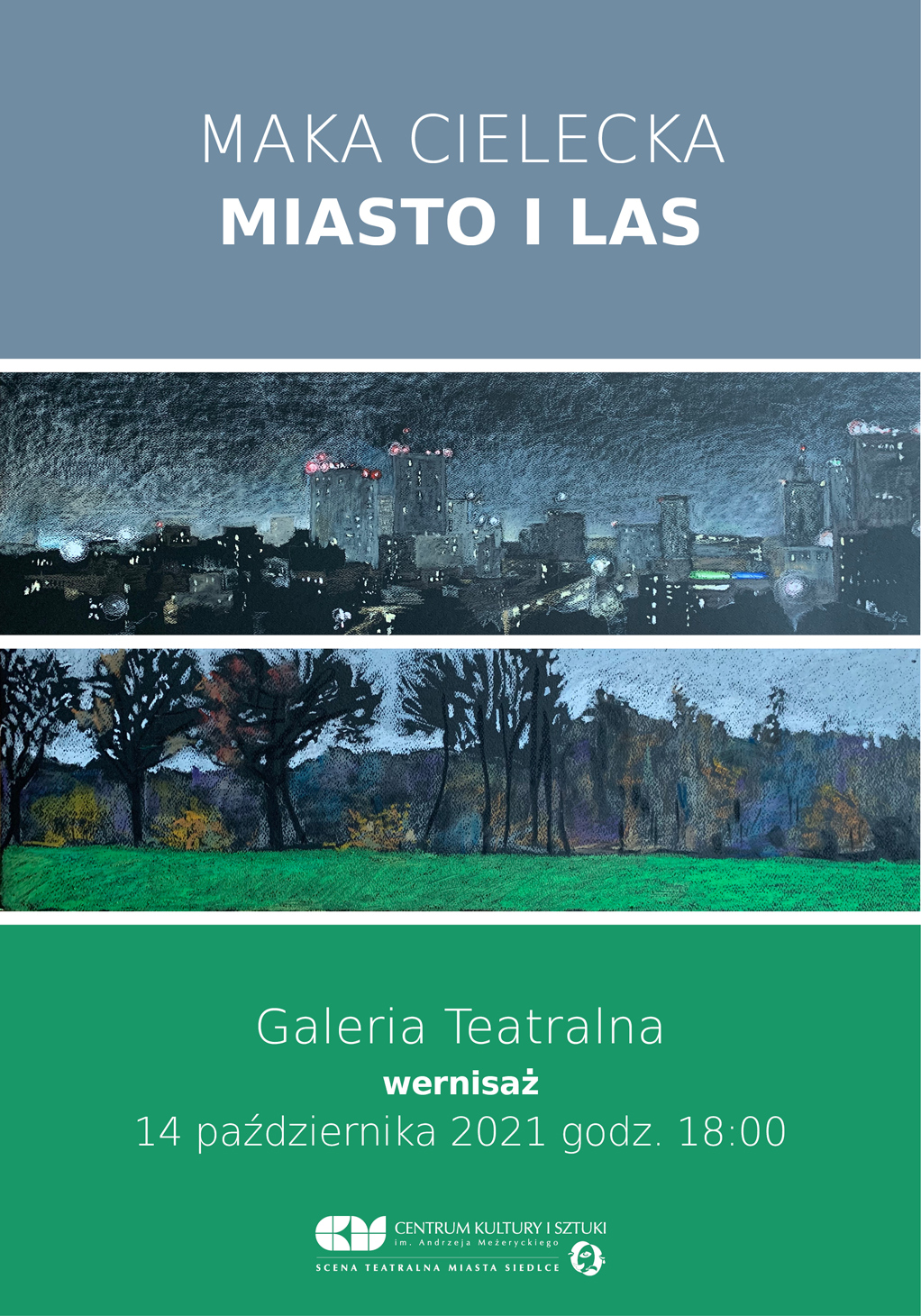W czwartek, 14 października o godz. 18:00 w Galerii Teatralnej CKiS w Siedlcach odbędzie się wernisaż wystawy „Miasto i las” autorstwa Maki Cieleckiej.