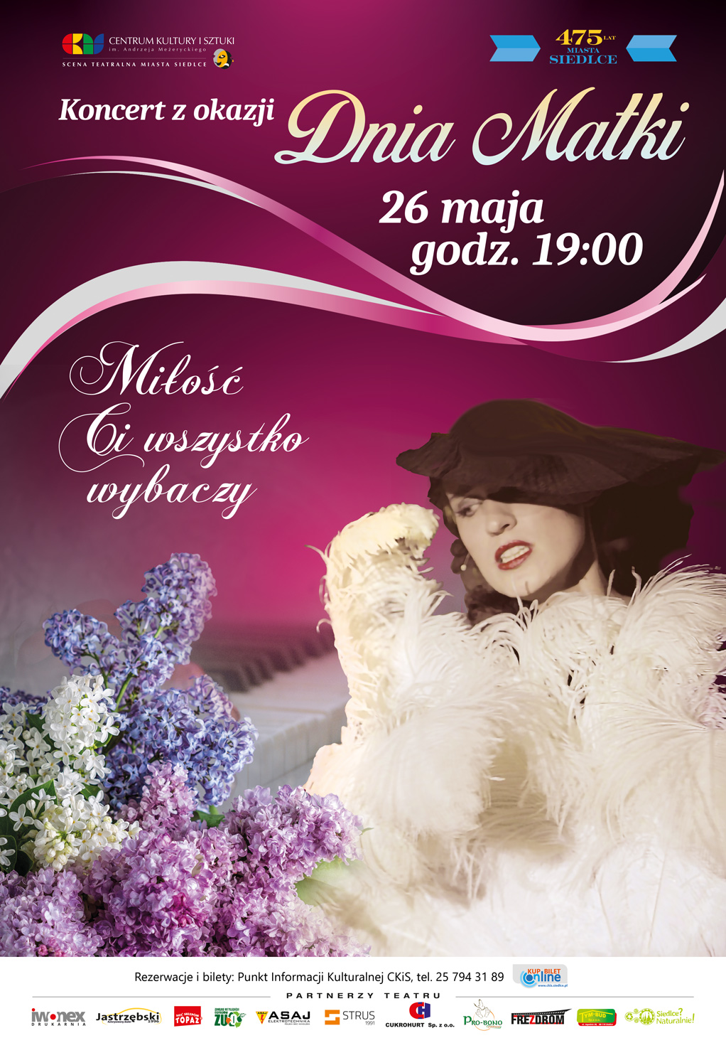 Rezerwacje i bilety dostępne w kasie CKiS tel. 25 794 31 89 oraz online: