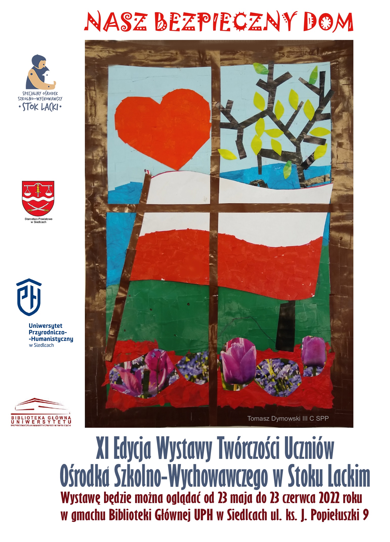 Zachęcamy do obejrzenia wystawy prac plastycznych uczniów Ośrodka Szkolno- Wychowawczego w Stoku Lackim, zatytułowanej „Nasz bezpieczny Dom”. To już XI Edycja tej wystawy, powrót po dwuletniej przerwie do wnętrz gościnnej Biblioteki Głównej Uniwersytetu Przyrodniczo-Humanistycznego w Siedlcach. Kolejna odsłona twórczości dzieci oraz młodzieży ośrodka daje możliwość odkrywania ich świata, który na co dzień może wydawać się tak różny od naszego. Plastyka jest tą częścią ich działalności, która, poza terapią dłoni, czy funkcją usprawniającą zaburzone sfery, pozwala na budowanie swobodnej ekspresji wypowiedzi, odblokowanie emocji i spontaniczną narrację plastyczną uczestników zajęć.