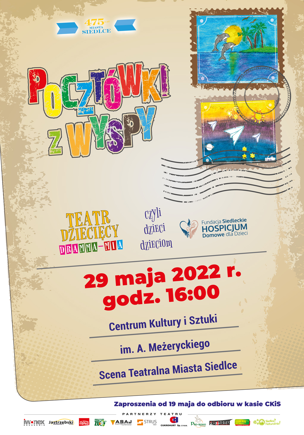 W niedzielę, 29 maja o godz. 16:00 na deskach Sceny Teatralnej Miasta Siedlce odbędzie się premierowy pokaz przedstawienia "Pocztówki z Wyspy" w wykonaniu Teatru Dziecięcego Dramma-Mia.