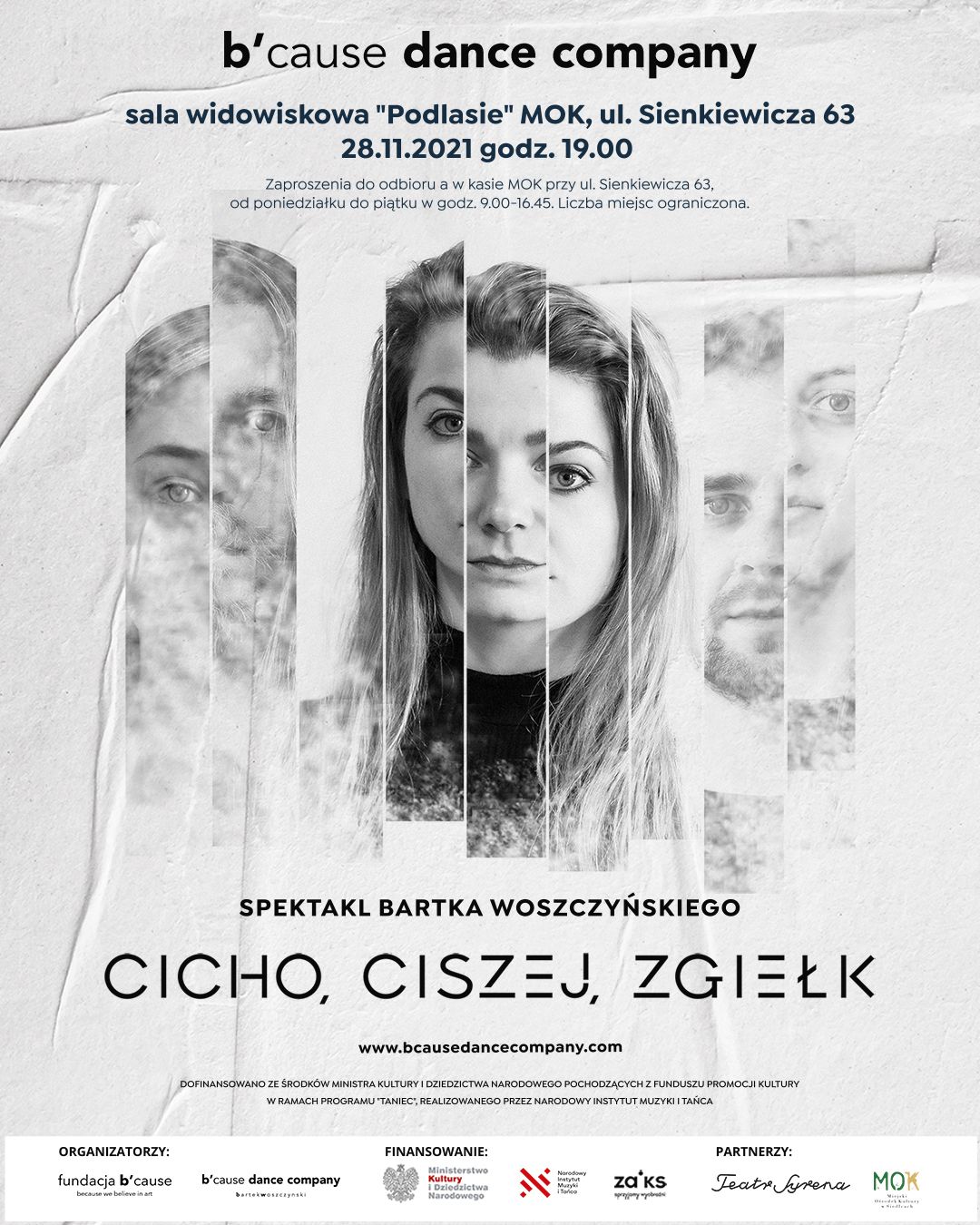 Darmowe zaproszenia do odbioru w kasie MOK przy ul. Sienkiewicza 63, od poniedziałku do piątku w godz. 9:00-16:45. Liczba miejsc ograniczona.